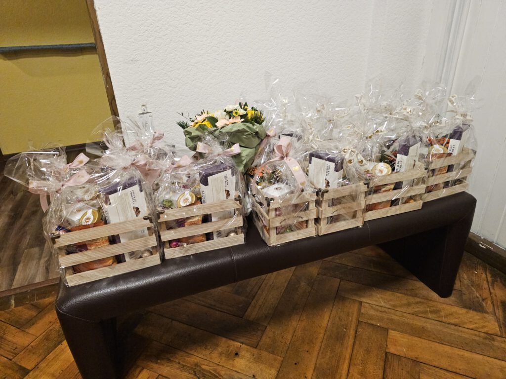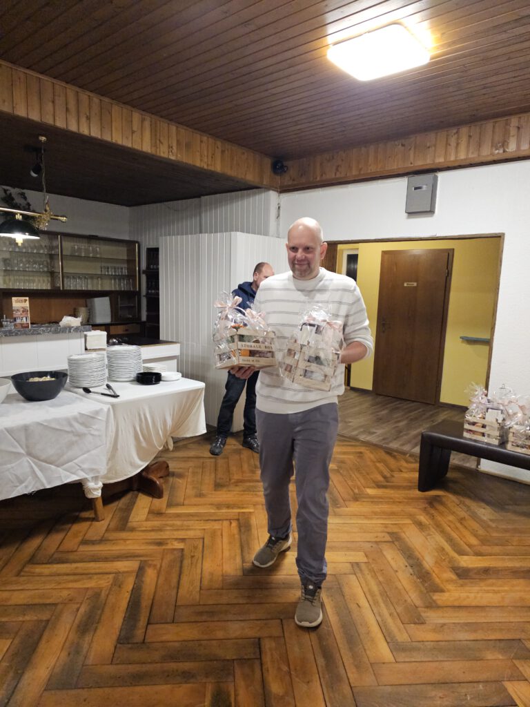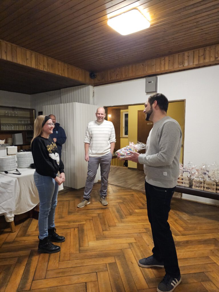 In seiner Ansprache bedankte sich unser 1. Vorsitzender Marius Achilles herzlich bei allen Frauen der Vereinsmitglieder für ihre Unterstützung im vergangenen Jahr. Als kleines Zeichen der Anerkennung überreichte er liebevoll gestaltete Präsentkörbe, die von Elena Geier vorbereitet worden waren.