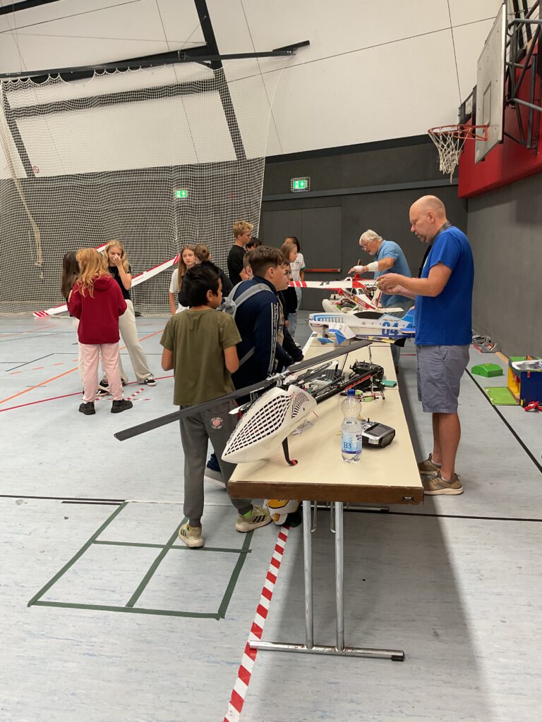 Am 29.08.2025 war die Flieger Modellbau Gruppe Waldalgesheim beim EASI-Aktionstag in der Büdesheimer Rundsporthalle vertreten. Gerd Rudolph und Marius Achilles stellten den jugendlichen Schülerinnen und Schülern das spannende Hobby Modellflug vor.